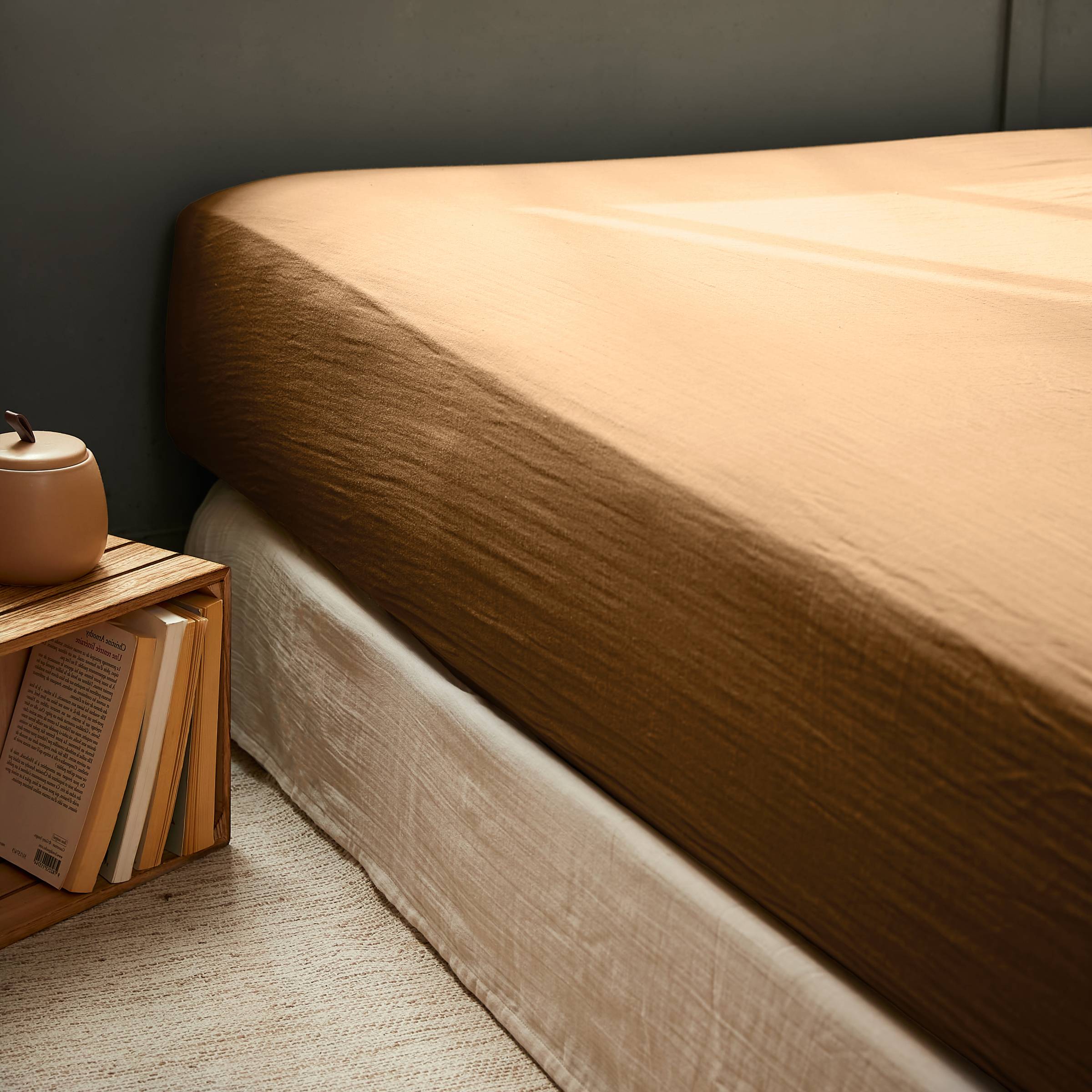 Lavare a 40°, asciugatrice possibile. Naturalmente stropicciato, questo lenzuolo di garza di cotone non richiede stiratura.